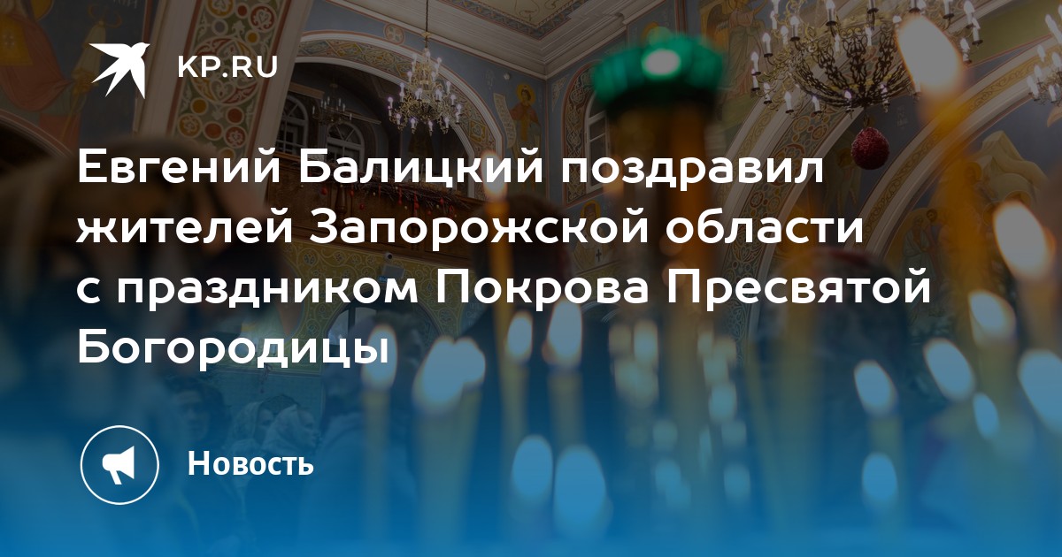 Губернатор Запорожской области Евгений Балицкий поздравил земляков с праздником Покрова Пресвятой Богородицы. Соответствующий пост он опубликовал в своих соцсетях.